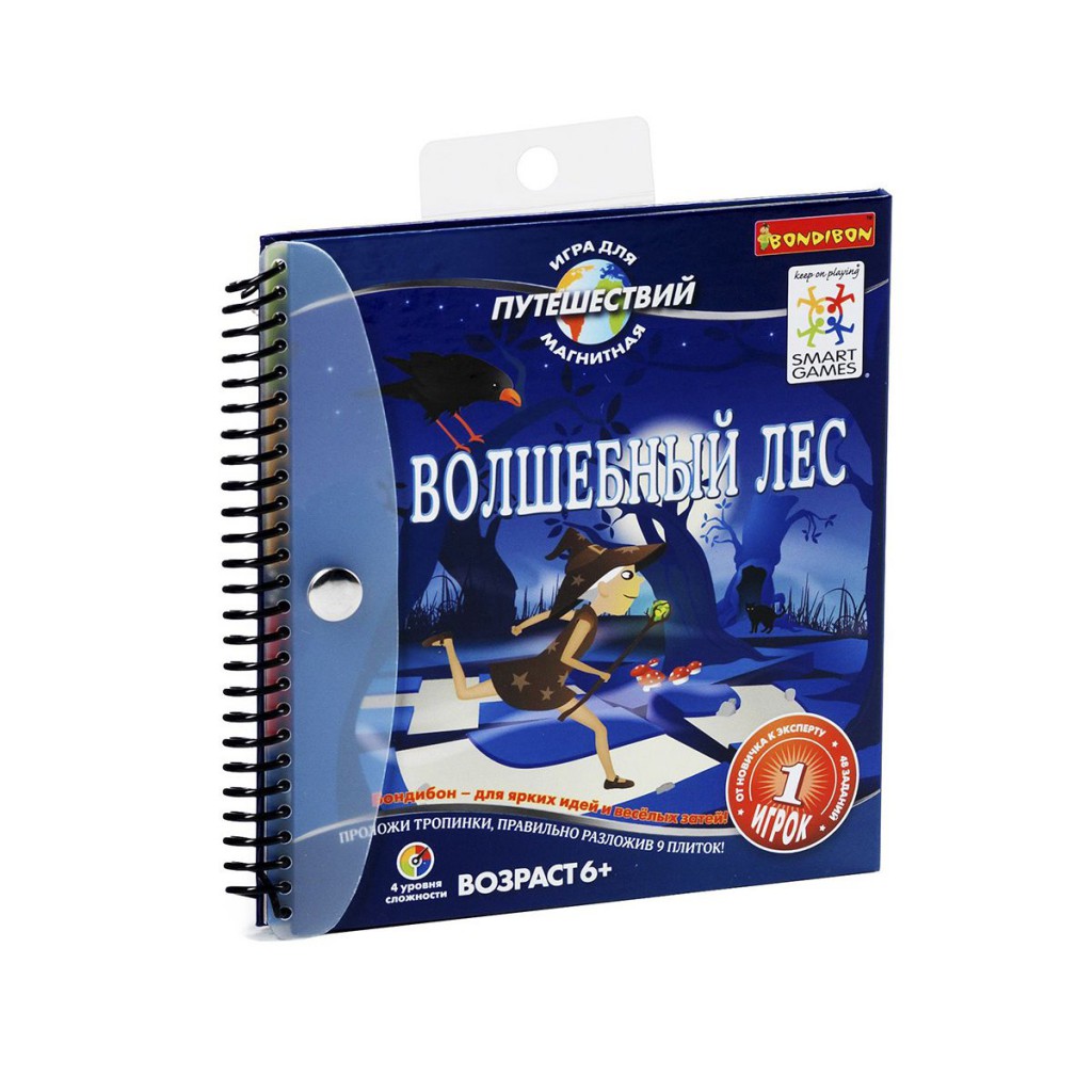 Злой колдун перепутал все тропинки в лесу, чтобы помешать маленькой ведьмочке найти спелые мухоморы и волшебный горшочек для того, чтобы сварить волшебное зелье. Помоги маленькой ведьмочке и другим сказочным персонажам, живущим в лесу. Как только ты проложишь нужные тропинки, расположив на игровом поле все 9 плиток, задание выполнено. Каждое задание имеет несколько вариантов решения, один из них можно найти в конце книжки с заданиями. Но ты не торопись заглядывать в ответ, попробуй догадаться сам - это же так интересно! В комплекте блокнот в твердом переплете с магнитной подложкой на пружине, 9 магнитных деталей, буклет с 48 заданиями от простых до очень сложных. Блокнот удобно застегивается на кнопку, размеры блокнота позволяют взять его с собой в любое путешествие. Играй, когда захочется!