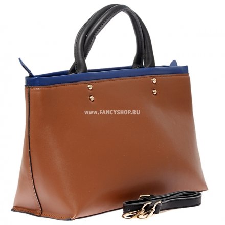 Стильная лаконичная сумка из натуральной кожи с интересным сочетанием двух цветов. Основное отделение на молнии, внутри карман-перегородка, два открытых кармана и один на молнии. Плечевой ремень прилагается. Высота ручек: 12 см.