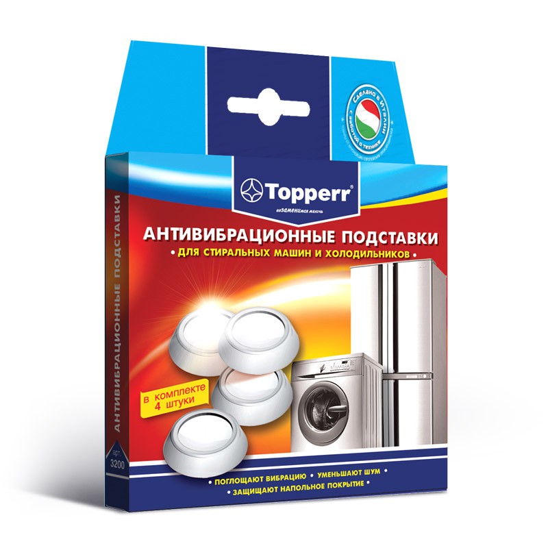 Антивибрационные подставки произведены из специального полимерного высокопрочного материала. Избавляют от шума и вибрации во время работы прибора. Защищают напольное покрытие (ламинат, линолеум, паркет) от вмятин и разрывов. В комплекте 4 шт.