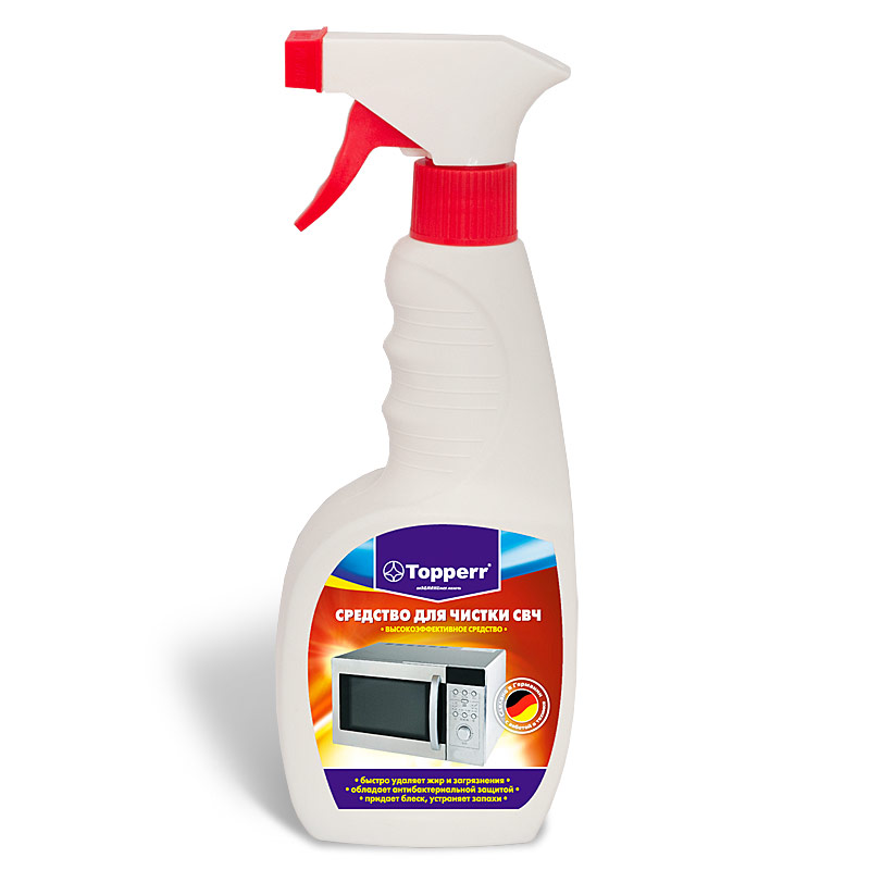 Средство для ухода за СВЧ предназначено для быстрого удаления нагара, масложировых и других загрязнений как на внешней, так и на внутренней поверхности микроволновой печи. Средство обладает антибактериальными свойствами, эффективно чистит и препятствует образованию бактерий и микроорганизмов. Устраняет неприятные запахи и придаёт блеск очищаемой поверхности.