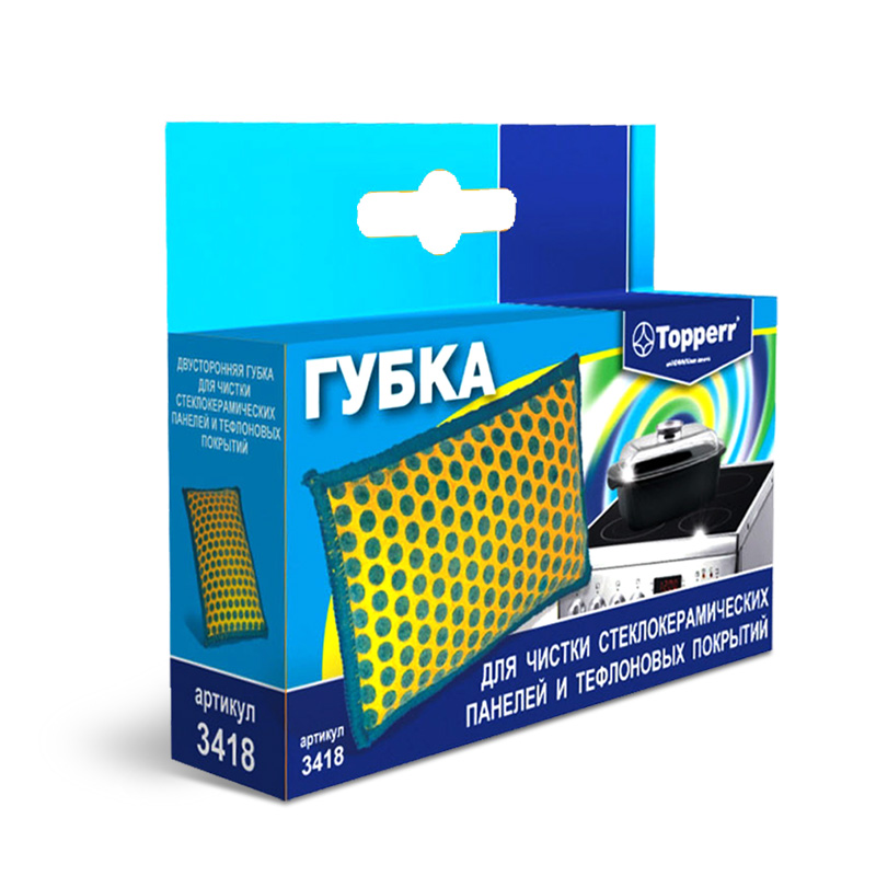 Губка для чистки стеклокерамических панелей и тефлоновых покрытий. Двусторонняя губка состоит из качественного поролона и безабразивного фиброволокна, позволяющего очищать поверхности, не царапая их. Бережно и качественно очищает тефлоновые и стеклокерамические поверхности.