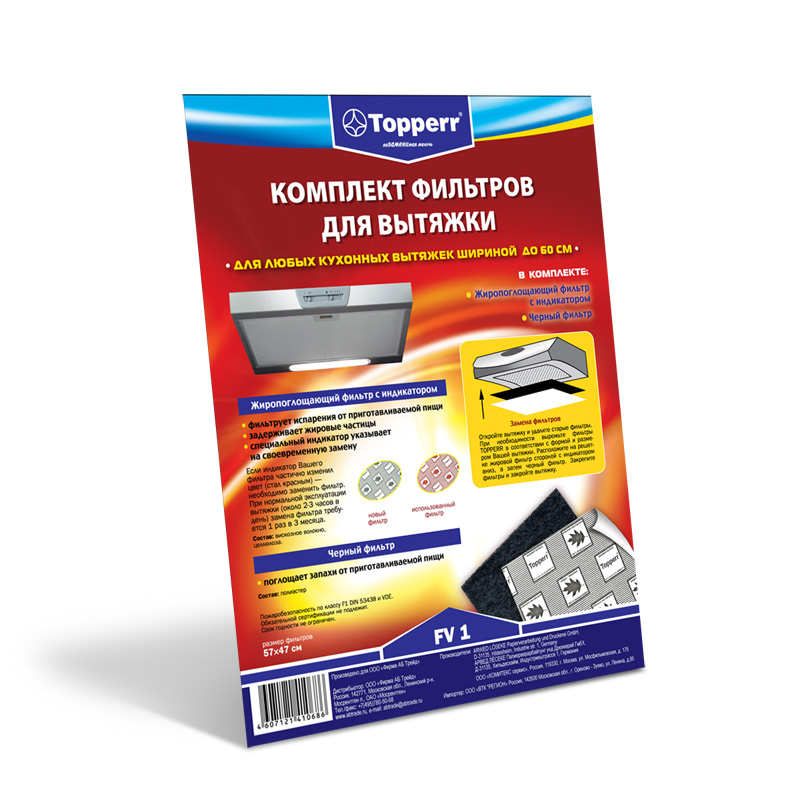 Подходит к любым кухонным вытяжкам шириной 50-60 см, удаляет запахи и улавливает все жировые испарения. Пожаробезопасен.
