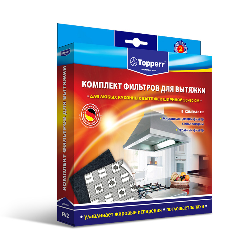 -жиропоглощающий фильтр размером 47 см*55 см с индикатором Top*perr, как только индикатор изменит свой цвет с серого на красный – произведите замену фильтра.